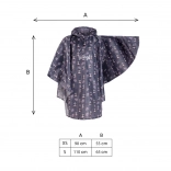 Az átgondolt szabás úgy készült, hogy a poncsó kényelmesen felvehető hátizsák vagy iskolatáska fölé is. A szürkületben és esőben a biztonságot a fényvisszaverő elemek növelik. Eső után a poncsó könnyen elcsomagolható a színben harmonizáló, összehúzható zsákba.