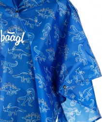 A BAAGL Dino gyerek poncsó kék színben, játékos dinoszaurusz mintával ideális társ esős napokra. Könnyű, vízálló anyagból készült, nem korlátozza a mozgást, és megbízhatóan véd az átnedvesedéstől. A sildes kapucni megakadályozza, hogy a víz az arcba csorogjon, a patentok pedig megkönnyítik az öltözködést.