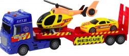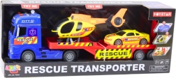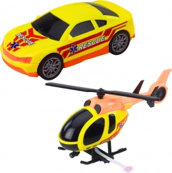 A készletben található három valósághű jármű: teherautó, helikopter és sport mentőautó.