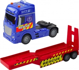 A készlet intenzív és biztonságos játékra van tervezve, különös figyelemmel a részletekre, színekre és funkcionalitásra. A helikopter kézi vezérlésű rotorokkal és fény- és hangeffektekkel van felszerelve. A teherautó tolatási, motor- és riasztóhangokkal rendelkezik, és háttérvilágítása növeli a valósághű élményt. A mozgatható rámpa lehetővé teszi a helikopter és az autó könnyű berakodását és kirakodását, miközben a gumiból készült abroncsok és mentőmatricák növelik az autentikusságot.