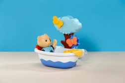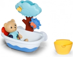 Tegye kellemesebbé a fürdést a gyerekeknek a cuki fürdetőkáddal és Teddy macival. Az interaktív készlet tartalmaz egy forgó vízikereket, felhős fa-zuhanyt, vízöntő poharat és tapadókorongokat a könnyű rögzítéshez a kádra vagy a zuhanyfalra. A 15 cm-es maci nyomtatott fürdőruhát visel, és ideális a kisgyermekek apró kezeihez.