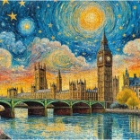 Ez a minőségi puzzle szett elbűvöli a művészet és az ikonikus városi látképek kedvelőit. A motívum az impresszionista égbolt hangulatát örökíti meg London felett, élénk színekkel és finom átmenetekkel. Az 1000 precízen vágott darabnak köszönhetően gördülékeny a kirakás és igazán megnyugtató a kikapcsolódás.