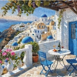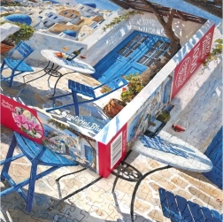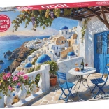 A CherryPazzi „Santorini Blues” kirakó gyönyörű kilátást nyújt a festői Santorini szigetére. A kép egy keskeny, virágokkal díszített teraszt ábrázol lenyűgöző kilátással a kalderára és a tengerre, tökéletesen megragadva a mediterrán élet idilli báját. Az építészet sima, letisztult vonalai visszatükrözik az erős égei napsütést, miközben a kék kupolák a tenger és az ég színével harmonizálnak, erőteljes és harmonikus kontrasztot teremtve.