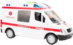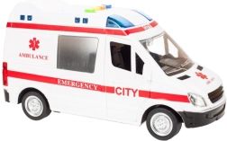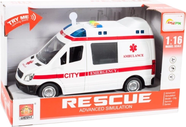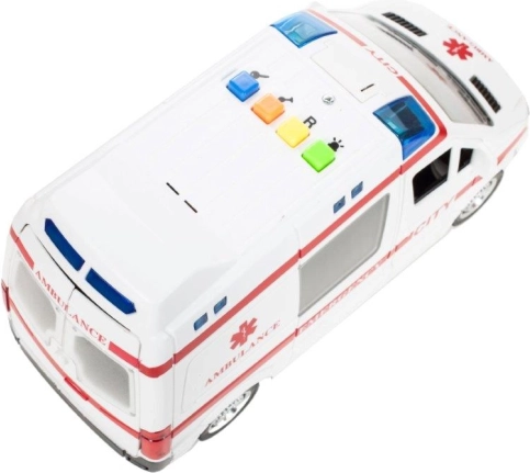Az 1:16 méretarányú, élethű gyerek mentőautó autentikus mentési élményt nyújt. A tetőn lévő gombok megnyomására felkapcsolnak a villogók, és megszólalnak a motor-, sziréna- és dudahangok, melyek még izgalmasabbá teszik a játékot.