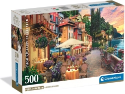 „Como-tónál” puzzle a Clementoni márkától – lenyűgöző, 500 darabos kirakó, amely Olaszország gyönyörű Como-tavának festői látványát hozza el. A kirakó a rangos High Quality Collection sorozat része, amely kiváló nyomtatási technikáiról és a darabok pontos illeszkedéséről ismert.