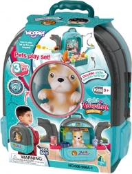 Fedezd fel az állatgondozás kreatív világát a WOOPIE 3 az 1-ben hordozható készlettel. A praktikus hátizsák kinyitva teljes értékű állatorvosi klinikává alakul házikóval és kerttel, ahol a gyerekek megvizsgálhatják, gyógyíthatják és kényeztethetik kutyusaikat. A bőséges tartozékoknak köszönhetően a játék lebilincselő, élethű és fejlesztő.