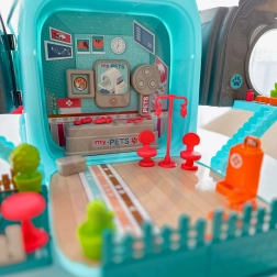 A csomag része többek között a sztetoszkóp és fecskendő, klinikai bútorok és felszerelések, valamint kutyus- és orvosfigurák – igazán lebilincselő és fejlesztő játékélményért.