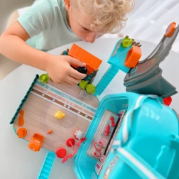Könnyű hordozható bőrönd/hátizsák, amely kinyitás után játéktérré válik házikóval és kerttel. A gyerekek bárhol játszhatnak, és mindent átláthatóan egy helyen találnak.
