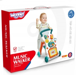 A WOOPIE márka zenélő járássegítője interaktív játék csecsemők és 6 hónapos kortól kisgyermekek számára. A zenei funkcióknak köszönhetően a finommotorika, a kéz–szem koordináció és a hallási észlelés fejlesztésére összpontosít. Ez a multifunkciós játék színes gombokkal és tekerőkkel van felszerelve, amelyek nemcsak vizuálisan stimulálnak, hanem megnyomásra vagy elforgatásra különböző dallamokat játszanak le. Remek segítség az első lépésekhez, miközben szórakoztat és fenntartja a gyermek érdeklődését.