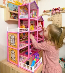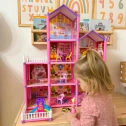 A készlet 194 elemet tartalmaz, beleértve az DIY összeszerelés elemeit, a bútort, a dekorációkat és a figurákat. A babaház biztonságos, tartós és színes anyagokból készült, így ideális 3 éves kortól, és hosszú órákon át bírja a játékot.