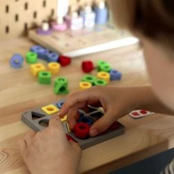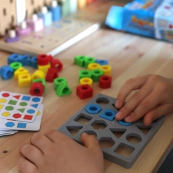 A játék fejleszti a logikai képességeket és a formák tudatosságát.