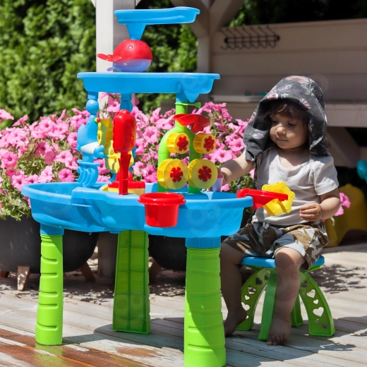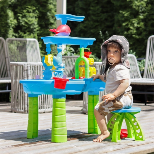 Az asztal fejleszti a finommotorikát, a kéz–szem koordinációt és a kreativitást. A masszív műanyag szerkezet kültéri és beltéri használatra is alkalmas, könnyen tisztítható. A szülők értékelni fogják a gyors összeszerelést/szétszerelést és a tartós anyagokat.
