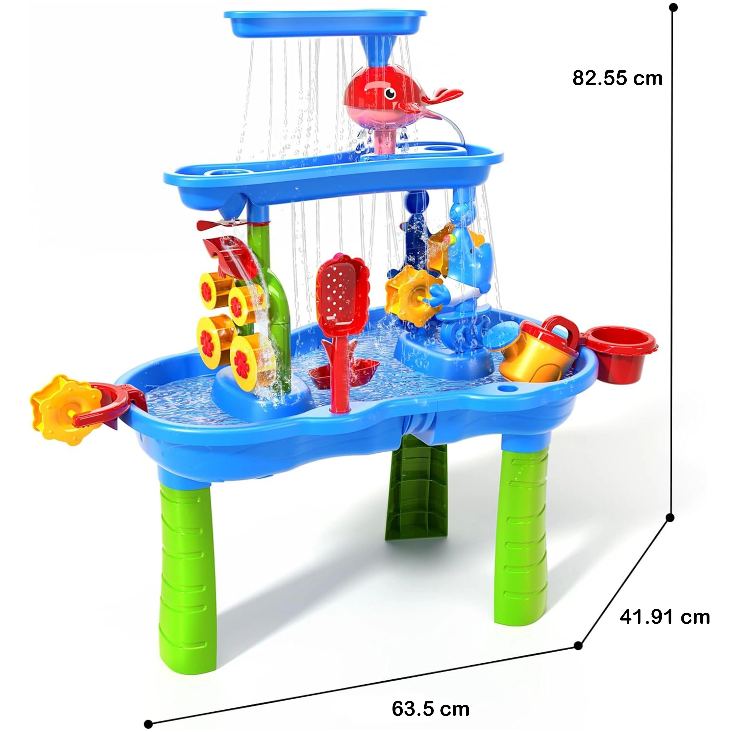 Önts vizet a felső tartályba, és figyeld, ahogy a víz végigfolyik a csatornákon, megforgatja a kerekeket, és játékosan vezeti be a gyerekeket az ok-okozati összefüggések felfedezésébe.