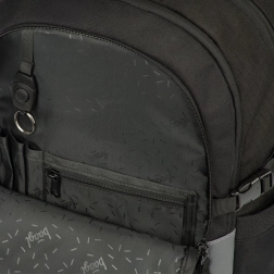 A külső anyag újrahasznosított és vízálló, így a hátizsák megbízhatóan ellenáll a változó időjárásnak. A biztonságról feltűnő fényvisszaverő elemek gondoskodnak a jobb láthatóságért szürkületben és sötétben. Oldalzsebek erős anyagból kulacsnak, tartós YKK cipzárak és elülső pántok a gördeszka rögzítéséhez sem hiányoznak. A hátizsák tolltartóval, tornazsákkal és más kiegészítőkkel azonos dizájnban összehangolható; a csomag része egy stílusos díszmedál is.