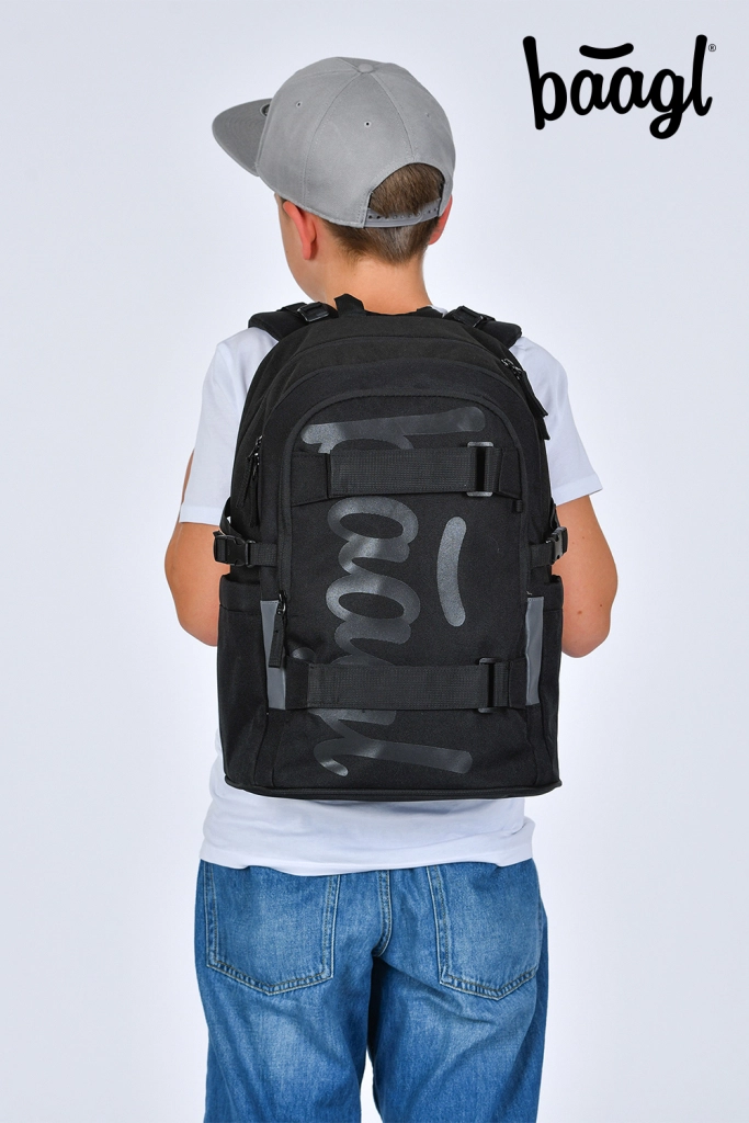 A könnyű és strapabíró BAAGL Skate Uni iskolai hátizsák elegáns fekete színben ideális a harmadik osztálytól. Kínál anatómiailag formázott hátkialakítást, 3 tágas rekeszt, párnázott zsebet 15"-os laptophoz és praktikus pántokat gördeszka rögzítéséhez. Újrahasznosított, vízálló anyagból készült, fényvisszaverő elemekkel a maximális biztonságért és megbízható YKK cipzárakkal.