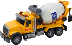 A sárga gyerek betonkeverő minden kis építőt megörvendeztet: van benne forgatható dob, fény- és hangeffektek (kürt, motor, tolatás), tartós műanyagból készült, és azonnal működik a kicsomagolás után – az elemek a csomag részét képezik.