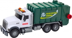 Realisztikus kukásautó 1:14 méretarányban, fény- és hanghatásokkal, mozgó elemekkel és két szelektív hulladékgyűjtő kukával. Masszív műanyag kivitel, elemek a csomagban, a tetőn lévő gombokkal való egyszerű kezelés pedig hosszú és biztonságos szórakozást garantál.
