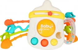 Színes tejüveg formájú szenzoros játék a legkisebbeknek ideális a gyermek szenzoros és manuális fejlődésének támogatására már az első hónapoktól. Ez az interaktív játék a csecsemők igényeit szem előtt tartva készült – segíti a fogást, a kéz-szem koordinációt, és stimulálja az érintés, a hallás és a látás érzékelését.