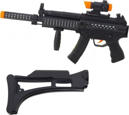 Szerezzen örömet az akciójátékok kis rajongóinak. Ez a gyerek géppisztoly ideális katonásdihoz, különleges küldetésekhez és szabadtéri csatákhoz. A ravasz megnyomására LED fények és valósághű hangeffektek indulnak, amelyek fokozzák a hangulatot és bevonják a gyerekeket a játékba.
