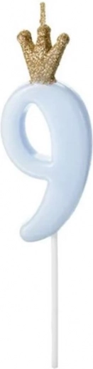 Kék születésnapi gyertya koronával, tökéletes dekoráció gyerekek születésnapi tortájához.