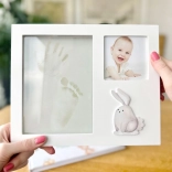 Eredeti fotorám a család legkisebb tagjairól szóló emlékek megőrzéséhez. Ez a gyönyörű keret lehetővé teszi, hogy elhelyezze gyermeke fényképét, és 3D kéz- vagy láblenyomatot készítsen maradandó emlékként.