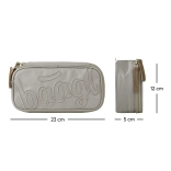 Stílusos és praktikus iskolai tolltartó fő rekesszel és dupla kihajtható füllel, amely elegendő helyet kínál. Ideális minden iskolai szükséglethez.