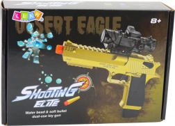 A szórakozás pillanatok alatt indulhat. A pisztoly kétféle lőszert használ – beáztatás után használatra kész hidrogél (vizes) golyókat és puha mini habszivacs nyilakat, így beltérre és kertbe egyaránt megfelelő. A tápellátást 3,7 V‑os Li‑ion akkumulátor biztosítja az egyszerű USB‑töltéssel.