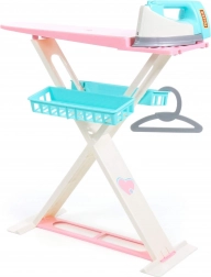 A készlet tartalmaz egy összecsukható vasalódeszkát, vasalót, 2 db szennyestartó kosarat és egy ruhafogast.