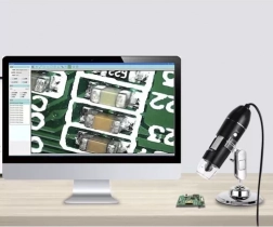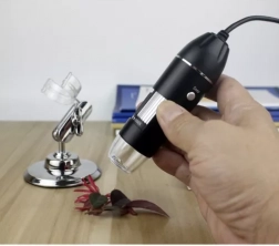 A digitális mikroszkóp rendkívüli, akár 1600-szoros nagyítást tesz lehetővé a minták – például rovarok, szövetek vagy anyagszerkezetek – részletes megfigyeléséhez.