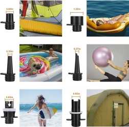 A Trizand elektromos pumpa hat cserélhető fejjel rendelkezik különböző vízi eszközökhöz, beleértve a paddleboardokat, kajakokat és más vízi járműveket. Segítségével gyorsan és erőfeszítés nélkül felfújhatja felszerelését a 350 l/perc teljesítménnyel és a 20 PSI maximális nyomással.