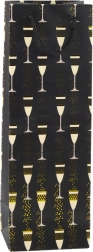 Ez az ajándéktáska palackhoz a reprezentatív megjelenést és a funkcionalitást ötvözi. A poharak és buborékok arany akcentussal díszített, látványos nyomata ünnepi hangulatot ad minden ajándéknak – esküvőre, születésnapra, évfordulóra, szilveszterre és céges eseményekre is illik. Univerzális mérete biztonságosan befogadja a legtöbb szabványos palackot.