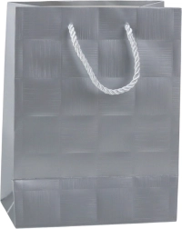 Reprezentatív ajándékcsomagolást keres? Ez az ajándéktáska finom, geometrikus, szabályos négyzetekbe préselt mintájával modern és egyben időtálló hatást kelt. A masszív felület és a sodrott zsinórfülek harmonizáló színben kényelmes és biztonságos hordozást nyújtanak még nehezebb tárgyak esetén is.