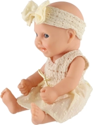 Adj lehetőséget a gyerekeknek első babagondozós élményükre! Ez a puha testű baba kellemes ölelést, természetes üléspozíciót és könnyű pozícionálhatóságot kínál. Az élethű arcvonások, a cuki sapkák és fejpántok, valamint a pasztell ruhácskák a mindennapi játék kedvelt társává teszik.