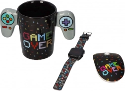 Élvezd a kedvenc italodat egy adag gamer nosztalgiával. Ez a fekete kerámia bögre GAME OVER motívummal különleges dizájnt kínál két, játékvezérlő formájú füllel és színes gombokkal. A vidám megjelenést kényelmes fogás és praktikus méret egészíti ki a mindennapi használathoz.