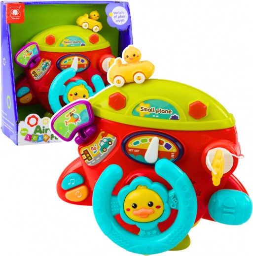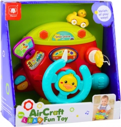 Interaktív repülőgép műszerfal mindent tartalmaz, amire a kis pilótának szüksége van – kormány, kulcs, működő gombok, irányváltó kar és miniatűr kulcs. A gombok megnyomásakor a játék vidám hangokat, dallamokat és fényhatásokat bocsát ki, amelyek ösztönzik a gyermek érzéki fejlődését.