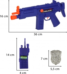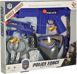 A készlet a rendőrségi felszerelés alapvető elemeit tartalmazza, beleértve a pisztolyt, a karabélyt, a bilincset, a maszkot és további kiegészítőket a valósághű játékért.