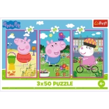 Bemutatjuk a puzzle 3x50 Peppa Pig - A barátság ereje szettet, amely három különböző képet hoz el a népszerű mesefigúrákkal. Minden kirakó egy 275x180 mm méretű képet alkot, ami ideális a kisebb gyerekek számára.