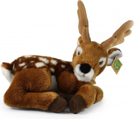 Hűséges színezés, finom agancskezdemények és fehér pettyezettség adnak hiteles megjelenést, miközben a puha plüss ölelgetésre és pihenésre csábít.