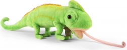 Hímzett elemek, narancssárga hátitüskék és egy aranyos rózsaszín nyelvecske teszik a kaméleont igazán hűséges plüss baráttá.
