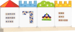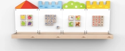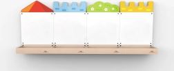 A készlet nem tartalmazza a képeken látható kiegészítő mágneses kockákat. A készlet 4 mágneses táblát, 4 dekoratív elemet és 4 tárolót tartalmaz a táblákhoz.
