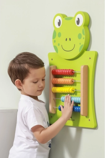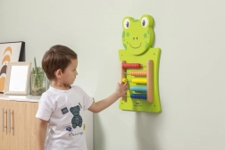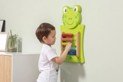 Ez a békás számoló a játékos esztétikát hasznos tanulással ötvözi. Az öt vízszintes rúd színes gyöngyei mozgásra és számolásra késztetnek, fejlesztve a finommotorikát, a szem–kéz koordinációt és a logikus gondolkodást. A fali kivitel helyet spórol, és mindig kéznél van.
