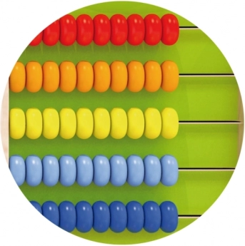 Öt sor élénk színű gyöngy ösztönzi a gyerekeket a számok, az összeadás és a kivonás természetes, játékos felfedezésére.
