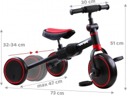 - 3 funkció 1-ben: járgány, pedálos tricikli, egyensúlyozó kerékpár