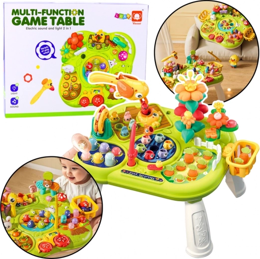 Az asztal különféle funkciókat kínál, amelyek ösztönzik a kíváncsiságot és támogatják a kísérletezést. Tartalmaz olyan játékokat, mint a "vakond megfogása", interaktív gombok, színes virágok, forgó elemek, karok és fogaskerekek. Segít a gyerekeknek megérteni az ok-okozati összefüggéseket, és megtanítja a precíz ujj- és kézmozdulatokat. Nemcsak szórakozást, hanem a természetes kognitív és kézügyesség fejlődést is támogatja.