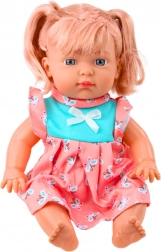 Bábu csecsemő színes ruhában, cumisüveggel és hangokkal