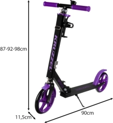 Könnyű KRUZZEL városi roller nagy, 200 mm-es kerekekkel a sima haladásért járdán és egyenetlen felületeken. Az összecsukható kialakításnak, az állítható kormánynak (87–92–98 cm) és a lábféknek köszönhetően biztonságos, kényelmes és a állítható vállpánttal könnyen hordozható. A csúszásgátló deck, a tartozékok a csomagban és az ABEC-7 csapágyak magabiztos, halk és egyenletes gurulást biztosítanak.