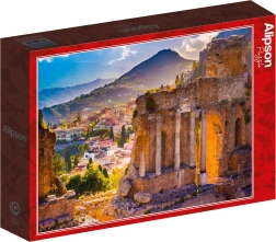 A történelmi amfiteátrum motívummal ellátott puzzle-ünk a festői Taorminában visszarepít benneteket az ősi időkbe, és lehetőséget ad, hogy otthona kényelméből fedezze fel a világot.