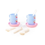 A készletben 4 csészét csészealjjal és evőeszközöket talál. Minden mosható, és könnyen tisztítható.