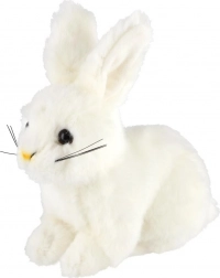A 15 cm magas, bájos fehér plüss nyuszi ideális társ ölelgetéshez és játékhoz. Pihe-puha bundája, kedves szemei és finom rózsaszín orrocskája van. Kompakt méretének köszönhetően elfér a kiságyban, a babakocsiban, és gyerekszobai dekorációnak is tökéletes. Születéstől ajánlott (0h+).