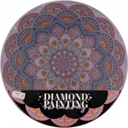 Fedezze fel a gyémánt festés varázsát lila mandala dizájnunkkal, amely egy 30 cm átmérőjű, kerek vászonra készült.